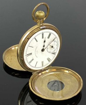 AMERICAN WALTHAM "TRAVELLER" GOLD PLATED HALF HUNTER? POCKETWATCH, top wind, circa 1896, 52mms (diam.)Provenance: private collection Conwy