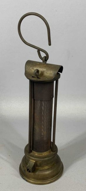 VINTAGE COPPER & STEEL BR(M) RAILWAY SIGNAL LAMP, Deganwy Station, 22cms (h) and an antique brass & steel Davy type miner's safety lamp with suspension loop, unnamed, 24cms (h)Provenance: private collection Conwy