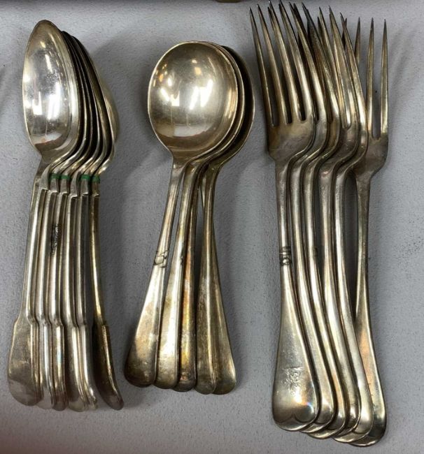 PLATED CUTLERY, Insignia Plate, an oak cased canteen, handles monogrammed H, approx. 63 pieces, fiddle pattern spoons and forks, with othersProvenance: private collection Conwy