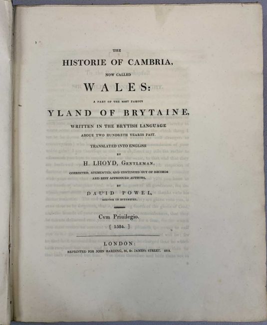 DAVID POWEL - The Historie of Cambria, translated into English by H. Lhoyd, published London 1584Provenance: private collection Ynys Mon