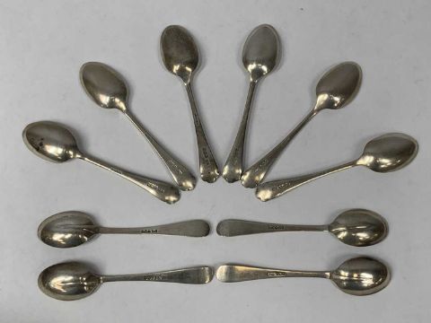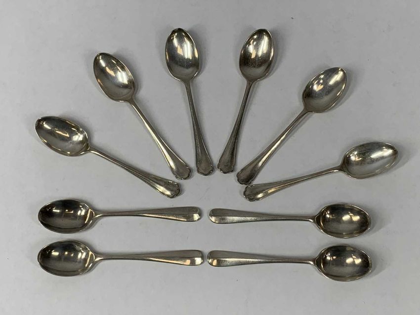 TWO SETS OF SILVER RAT-TAIL TEASPOONS, six Sheffield 1921, Atkin Brothers and four Sheffield 1928, Walker & Hall, 4.5ozProvenance: deceased estate Denbighshire