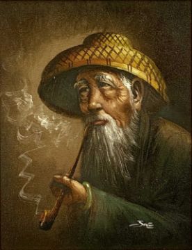 JOE (Korean 20th century) watercolour - bearded man in wicker hat smoking pipe, signed lower right, 24.5 x 19cmsProvenance: private collection ConwyComments: framed and glazed