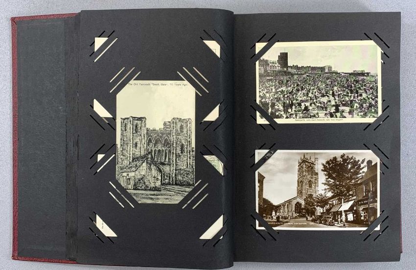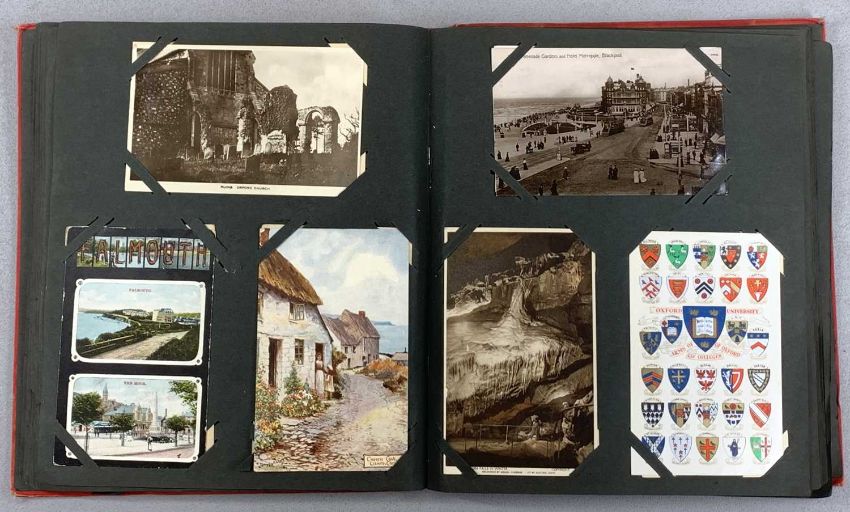 FOUR ALBUMS OF VINTAGE BRITISH POSTCARDS, one album postcards, foreign, Isle of Man and Channel Islands, album of Welsh postcards, loose cigarette cards and other collectablesProvenance: private collection Conwy