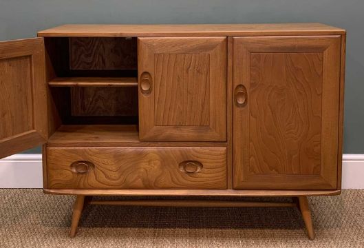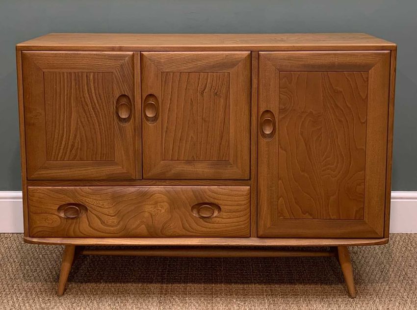 MID-CENTURY ERCOL 467 SIDEBOARD, solid elm and beech, natural wax finish, lift-out cutlery tray with moveable partitions, long deep drawerProvenance: private collection West WalesComments: no condition issues