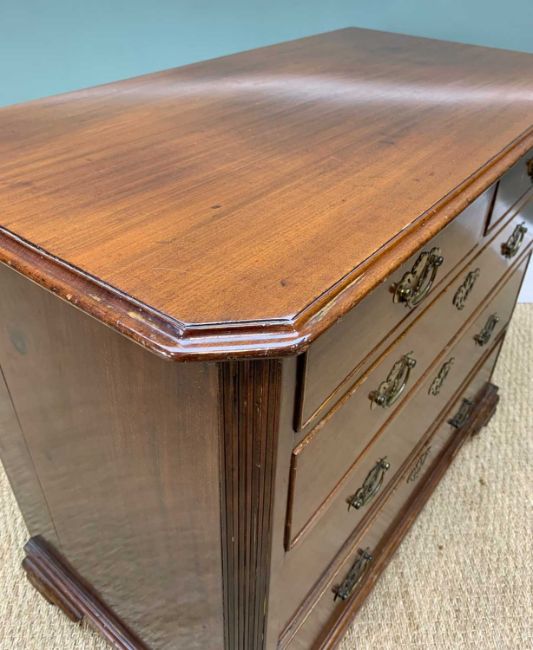 19TH CENTURY MAHOGANY CHEST, moulded top with canted angles above two short and three long graduated drawers, between fluted pilasters, on low bracket feet, 82 (h) x 100 (w) x 52cms (d)Provenance: private collection CardiffComments: possibly the top of a tallboy chest