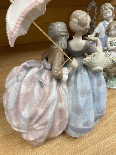 LLADRO PORCELAIN FIGURE, Southern Charm 5700, two ladies and lace parasol, 27cms (h)Provenance: private collection CardiffComments: unboxed, no base Condition Report:small damage to the petals