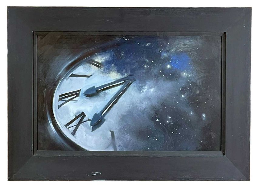 ‡ JOHN MACFARLANE (b.1948) mixed media - entitled verso, 'Clock' on Martin Tinney Gallery label, signed and dated 2009, 34 x 55cmsProvenance: private collection CardiffComments: framed and glazed, ready to hang
