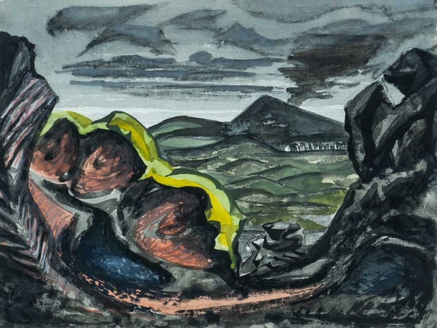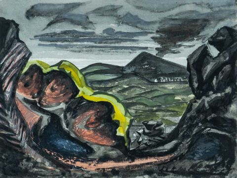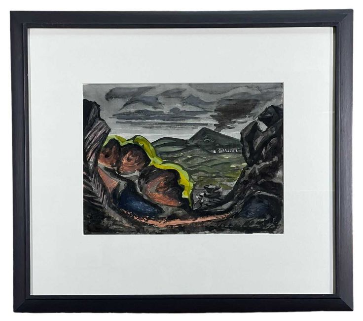 ‡ ERIC MALTHOUSE (1914-1997) mixed media - entitled verso, 'Pithead' on Martin Tinney Gallery label, 28 x 37cmsProvenance: private collection Vale of GlamorganComments: framed and glazed, ready to hang