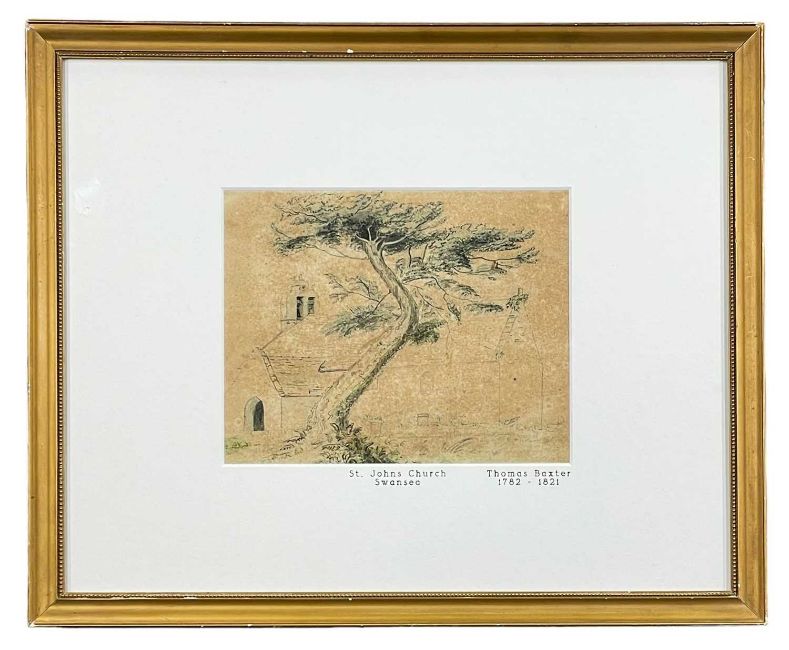 ATTRIBUTED TO THOMAS BAXTER (1782-1821) pen and ink on paper - entitled, 'St John's Church, Swansea', 15 x 19cmsProvenance: private collection CardiffComments: framed and glazed, ready to hang
