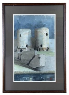 TOM JONES (Welsh 1936-2017) watercolour - entitled verso, 'Rhuddlan Castle', signed with monogram, 51 x 31cmsProvenance: artist's estate, no Droit de SuiteComments: framed and glazed, ready to hang