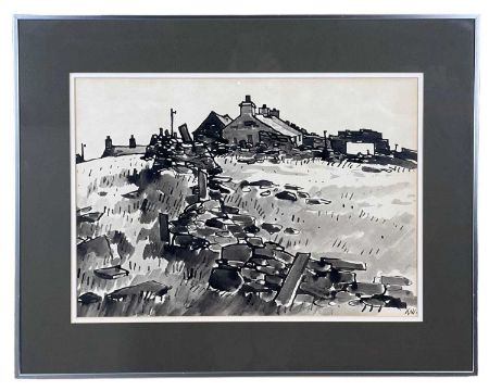 ‡ SIR KYFFIN WILLIAMS RA ink and wash - farmstead with dry stone walls, Tegfryn Art Gallery label verso, signed with initials, 33 x 48cmsProvenance: private collection ConwyComments: framed and glazed, ready to hangDelivery: complimentary delivery can be arranged for all purchases over £4000 in this Welsh Sale auction (England and Wales only) please contact brj@rjauctions.co.uk for further details