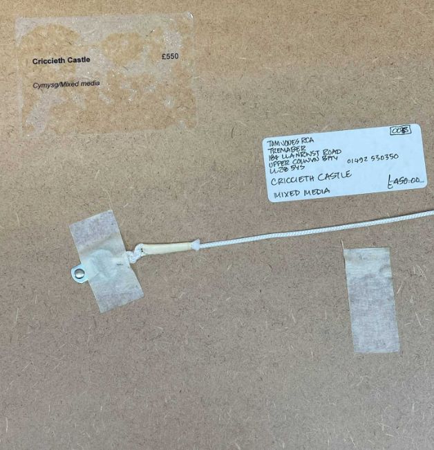 TOM JONES (Welsh 1936-2017) mixed media - entitled verso, 'Criccieth Castle', signed with monogram, dated '92, 56 x 37cmsProvenance: artist's estate, no Droit de SuiteComments: framed and glazed, ready to hang