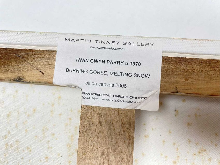 ‡ IWAN GWYN PARRY (Welsh b. 1970) oil on canvas - entitled verso, 'Burning Gorse, Melting Snow' on Martin Tinney Gallery label, signed and dated verso 2006, 61 x 76cmsProvenance: private collection CeredigionComments: unframed canvas, ready to hang