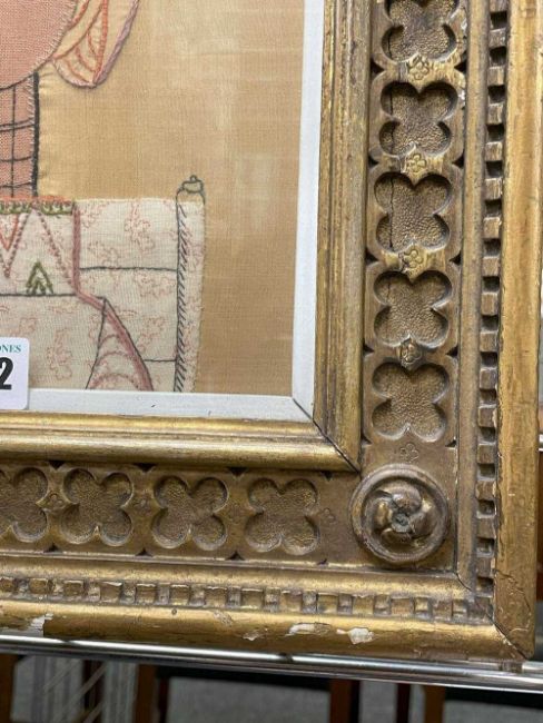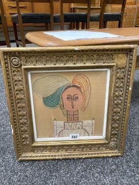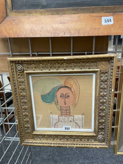 ‡ FRANCES RICHARDS (1903-1985) embroidery on silk - entitled verso, 'Head on Gold Silk', signed with initials, 22 x 22cmsProvenance: private collection CardiffComments: framed, ready to hang