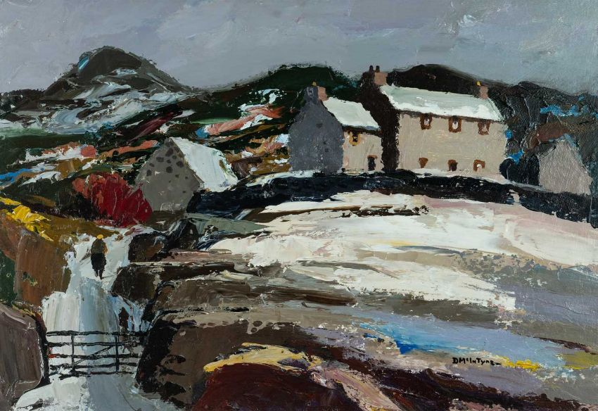 ‡ DONALD MCINTYRE (1923-2009) acrylic - upland farm in winter with figure, signed, 56 x 79cmsProvenance: private collection ConwyComments: framed, ready to hangDelivery: complimentary delivery can be arranged for all purchases over £4000 in this Welsh Sale auction (England and Wales only) please contact brj@rjauctions.co.uk for further details