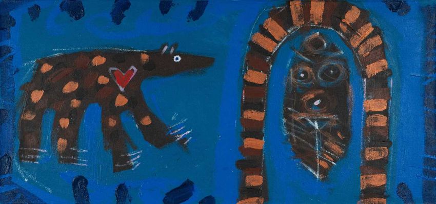 ‡ WILLIAM BROWN (Canadian-Welsh 1953-2008) oil on canvas - entitled verso, 'Brown Bear Admiring Venus of Blaengwynfi', signed and dated 1998 verso, 48 x 102cmsProvenance: private collection Herefordshire, purchased by the vendor from the artist's widow, copy of receiptComments: unframed canvas, ready to hang