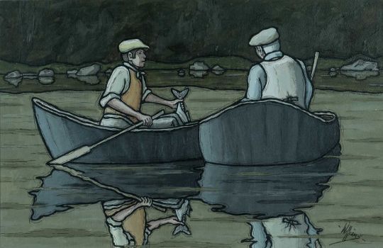 ALAN WILLIAMS (Welsh Contemporary) acrylic - entitled verso, 'The Catch', signed, 33 x 50cmsProvenance: artist's family, no droite de suite to payComments: framed and glazed, ready to hang