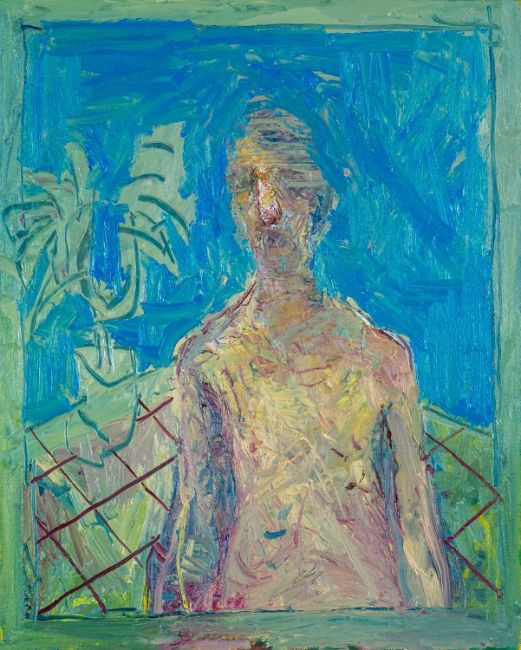 ‡ MEIRION GINSBERG (Welsh b.1985) oil on canvas - entitled verso, 'Topless Self Portrait' on Martin Tinney Gallery label, signed and dated 2010 verso, 51 x 40cmsProvenance: private collection BridgendComments: framed, ready to hang