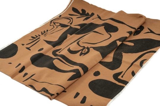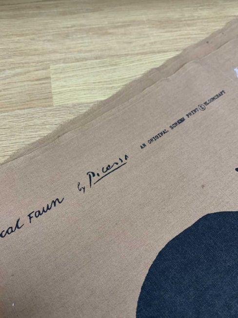 ‡ PABLO PICASSO (Spanish 1881-1973) designed screen-print furnishing textile, 'Musical Fawn' produced by Bloomcraft Inc. 1963, length 37" by the full selvedge to selvedge width of approx, 49"Provenance: Target Gallery invoice/letter, dated 2016, signed Richard Chamberlain, private collection West WalesAuctioneers Notes: 'Bloomcraft, the New York based textile design company was founded by Charles Bloom. The company had a history of commissioning artists and illustrators to create designs for them, including Rockwell Kent and Georges Braque, before engaging with Picasso in the early 1960's.' Richard ChamberlainComments: unused, traces of original paper label to top left, surface has some spotting as pictured