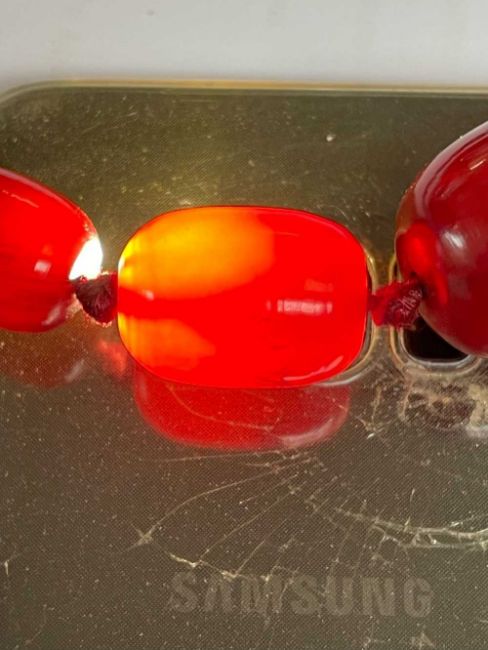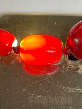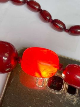 CHERRY RED AMBER BAKELITE GRADUATED BEAD NECKLACE, beads from 30mm to 13mm (w), appr. 102cm (long), 99gmsProvenance: private collection north Wales.Comments: good overall strung on red cord.