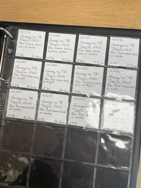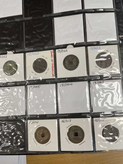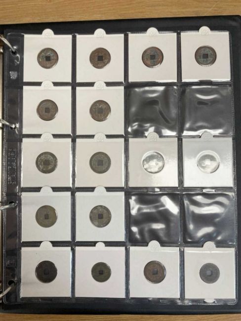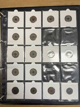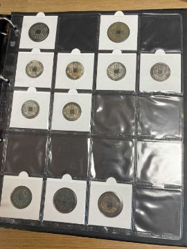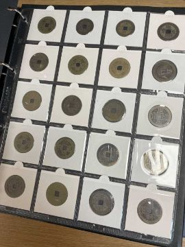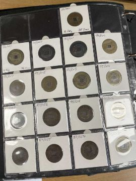 THREE COIN ALBUMS containing believed Qing and Ming Dynasty Chinese cash coins, including Chong Zhen Tong Bao, Hong Hua, Li Yong, Chong Zen ETCProvenance: deceased estate Swansea, part of a large single-owner collection, many puchased from Robert Tye coin dealerComments: wear overall, sold as seen, descriptions should be regarded as an opinion and not a statement of fact, viewing highly recommended