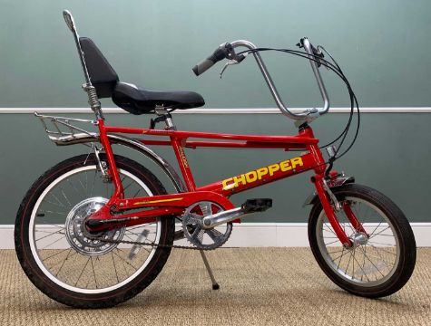 MKIII 'ARROW WEDGE' RALEIGH CHOPPER, red aluminium frame, handlebar mounted gear lever, produced between 2004 and 2009 having been out of production for the previous 25yrsProvenance: private collection Vale of GlamorganComments: looks complete and original down to the reflectors, minor scuffs to the frame and chainguard but overall the paint is bright, the chromework is pitted in places, notably the rear mudguard, sissy bars and spokes, the seatpost is free in the frame, so too the sissy bars, the saddle is free of scuffs and tears, good tread on the tyres which appear to be free of sidewall degredation, overall the bike gives the appearance that it has been lightly used, even the resin pedals are largely unworn, gears/brakes etc untested