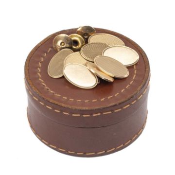 GENTS GOLD CUFFLINKS & STUDS, comprising two pairs 9ct oval chain link cufflinks, pair 9ct shirt studs, and a single 18ct collar stud,  tot wt 17.2g Provenance: private collection PenarthComments: fair used condition