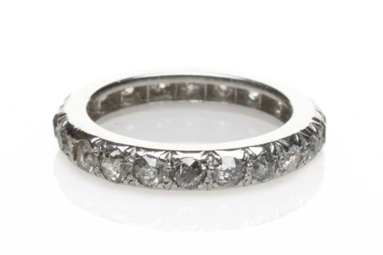 WHITE METAL DIAMOND ETERNITY RING, ring size K, 5.4gmsProvenance: private collection CardiffComments: good overall, light wear, viewing recommended