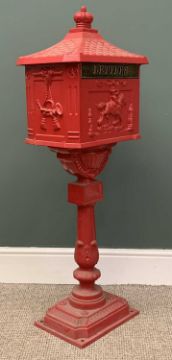 REPRODUCTION PAINTED RED METAL MAIL BOX, 121cms (h), 35 x 26cms (base)Provenance: deceased estate Conwy