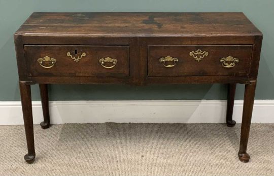 SHROPSHIRE / WELSH BORDERS OAK DRESSER BASE 19th Century, having two drawers on straight turned supports on pad feet, 77 (h) x 128 (w) x 44cms (d)Provenance: deceased estate Conwy