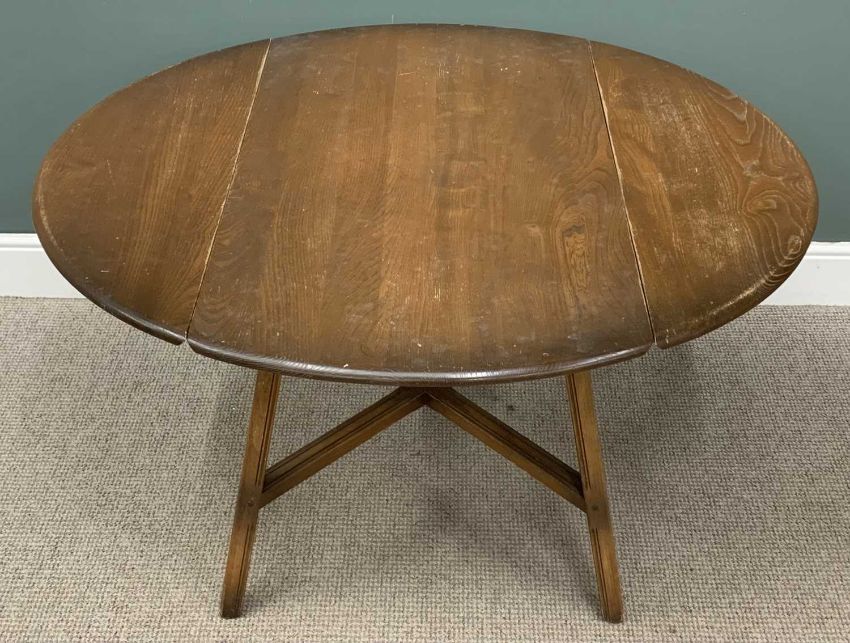 BELIEVED ERCOL DROP-LEAF TABLE with cross stretcher, 72 (h) x 64 (w) x 119cms (d)Provenance: private collection Conwy
