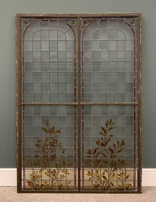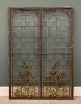 STAINED/PAINTED & LEADED GLASS PANEL, framed large example, 161 x 112cmsProvenance: private collection Conwy