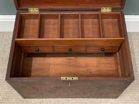 VINTAGE MAHOGANY GENT'S TRAVEL CHEST with neat compartmented interior, 37 (h) x 56 (w) x 38cms (d)Provenance: private collection Conwy