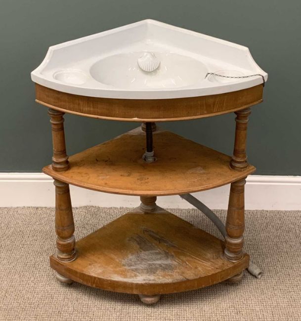 VINTAGE PINE CORNER WASHSTAND & SINK, 92 (h) x 76 (w) x 55cms (d)Provenance: private collection Denbighshire