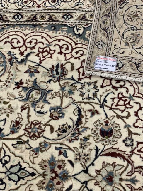 EASTERN FINE NAIN RUG, cream ground with oval central design and multiple pattern border, 354 x 255cmsProvenance: private collection Cambridgeshire