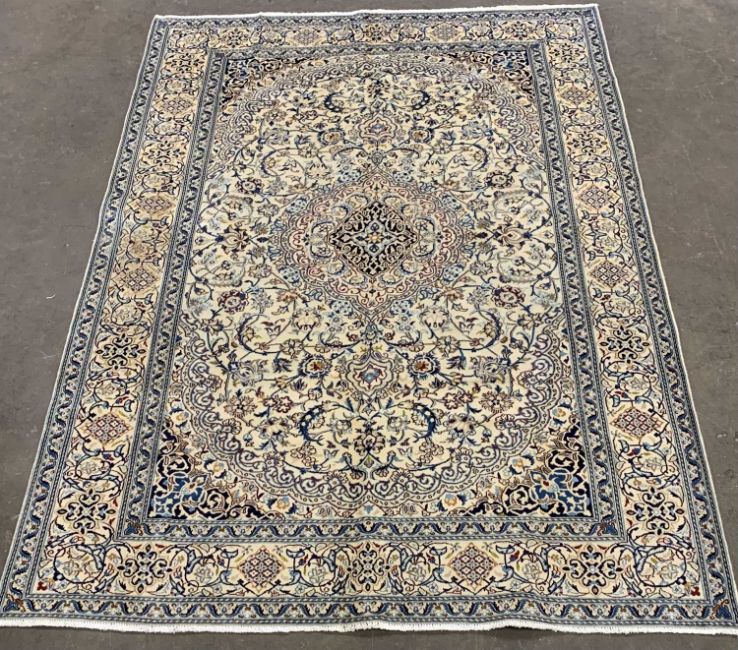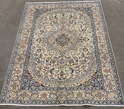 FINE NAIN EASTERN RUG, blue and cream ground with multiple border pattern, 292 x 197cmsProvenance: private collection Cambridgeshire