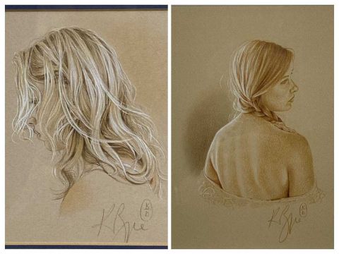 ‡ KAY BOYCE (British Contemporary) pastels on paper a pair - head and shoulder study of a young woman, signed, 12.5 x 13.5cms and pensive young girl looking over her shoulder, signed, 20 x 16.5cmsProvenance: private collection ShropshireComments: framed and glazed