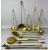 LARGE GROUP OF HOUSEHOLD BRASSWARE & OTHER ITEMS including skillet with swing handle, square trivet with pierced top, folding spark guard, kitchen scales and weights, various milk skimmers, chestnut roasters, ladles, toasting forks and other itemsProvenance: private collection Gwynedd