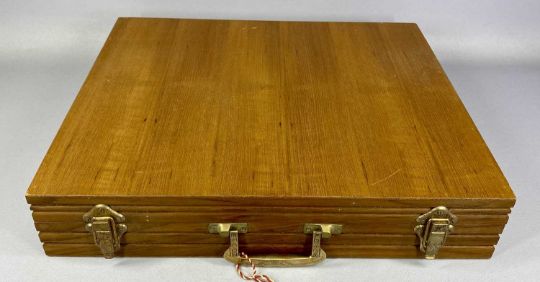 CANTEEN OF TAIWANESE GILDED METAL & WOOD CUTLERY, approx. 144 pieces, in wooden case with lift out trayProvenance: private collection Conwy