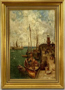‡ JULIUS HARE (British 1859 - 1932) oil on board - harbour scene, signed lower right, 44.5 x 29.5cmsProvenance: private collection LancashireComments: framed