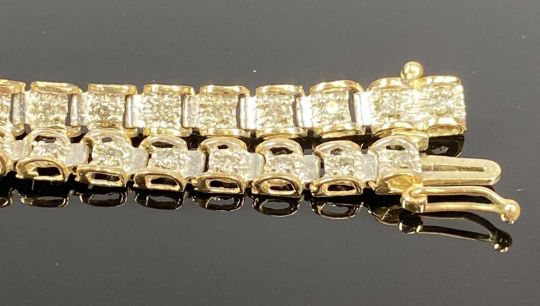 9CT GOLD & WHITE METAL TENNIS BRACELET, illusion set with 39 diamond chips, 37cms (l), 6.8gmsProvenance: private collection Ynys Mon