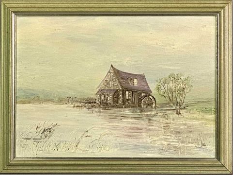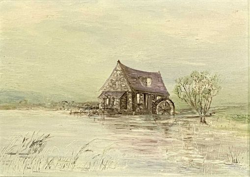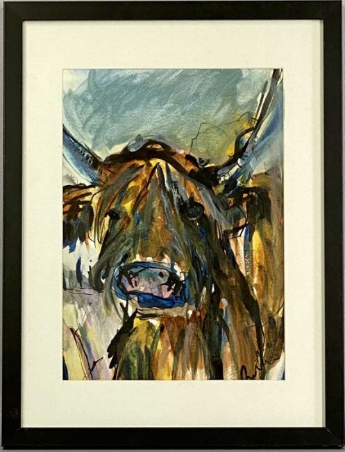 VARIOUS ARTISTS/MEDIUMS: CATHERINE McBAIN oil on canvas - entitled on label verso 'Waterwheel', 24.5 x 34.5cms, UNKNOWN (20th century) pastel - highland cow, indistinctly signed and dated 2001 lower right, 30 x 40cms and UNKNOWN (20th century) watercolour - highland cow, 29.5 x 21cmsProvenance: deceased estate ConwyComments: oil framed, watercolour framed and glazed, pastel unframed