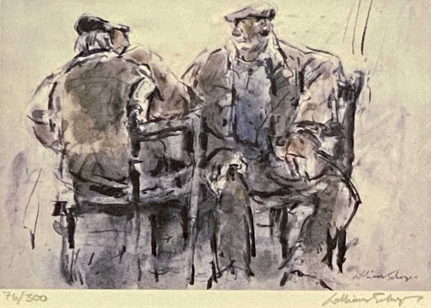 ‡ WILLIAM SELWYN (b.1933) limited edition 65/300 colour print - three men talking in pub, signed and numbered in pencil, 20.5 x 13.5cms, limited edition 76/300 colour print - two seated farmers talking, signed and numbered in pencil, 14.5 x 20cms and colour print - farmer, 20.5 x 14.5cmsProvenance: deceased estate Denbighshire Comments: framed