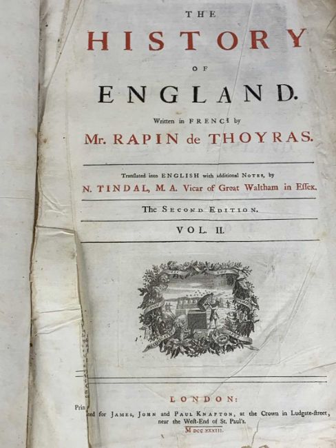 THE HISTORY OF ENGLAND, written in French by Rapin de Thoyras, translated into English (two volumes), published 1732Provenance: private collection Denbighshire
