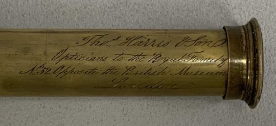 19TH CENTURY THREE DRAWER MAHOGANY & BRASS TELESCOPE, signed 'Thomas Harris & Son, London', 24.5cms closedProvenance: private collection Denbighshire