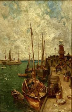 JULIUS HARE (British 1859 - 1932) oil on board - harbour scene, signed lower right, 44.5 x 29.5cmsProvenance: private collection LancashireComments: framed