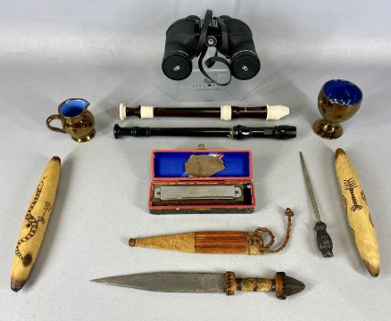 'THE SUPER CHROMONICA' M. HONER HARMONICA, primitive dagger in scabbard, camera and related items, loose stamps, etcProvenance: deceased estate Conwy