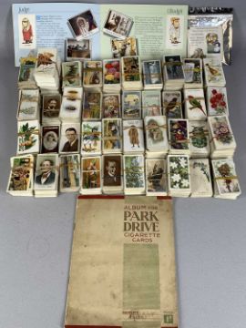 VARIOUS COLLECTABLES including cigarette and tea cards, vintage brooches, binoculars, stamps etc. and a collection of vintage British postcards in three albums and a flip alum, also, vintage British postcards in two albums including humorous and souvenir albums of tea cards, costume jewellery, etcProvenance: private collection Conwy