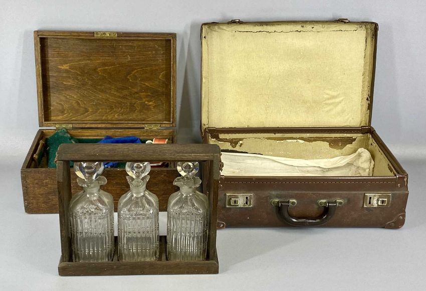 SMALL FURNISHING ITEMS including tantalus, cabinet top revolving bookcase, vintage oak writing slope and other items of treen etcProvenance: deceased estate Denbighshire