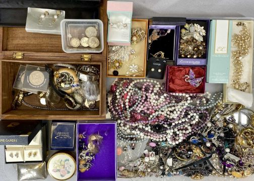 COSTUME JEWELLERY, COINS & WATCHES, etcProvenance: deceased estate Denbighshire